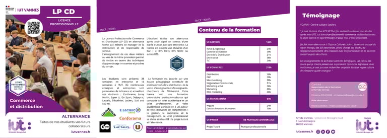 L’enjeu était de transformer un ensemble d’informations denses en un support attractif et engageant. Le choix des couleurs, des typographies et des visuels devait créer une mise en page dynamique et équilibrée, tout en respectant l’identité visuelle de l'IUT.